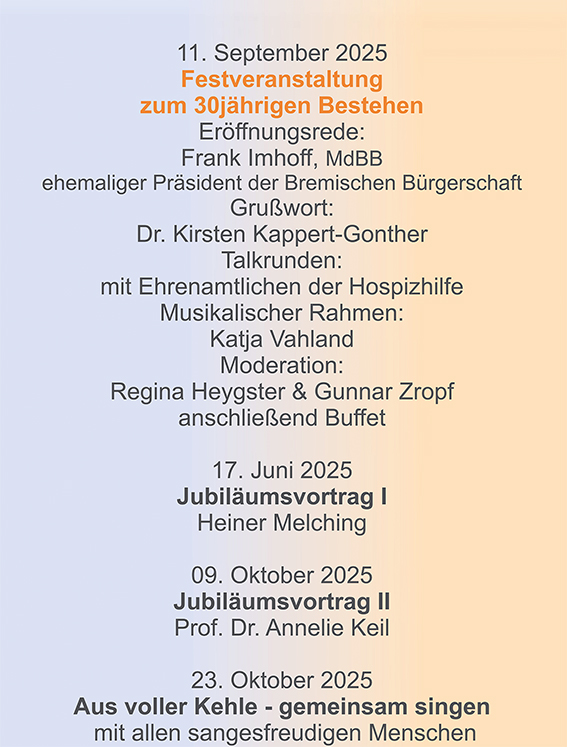 Die Hospizhilfe Bremen e.V. feiert in diesem Jahr 30jähriges Jubiläum.